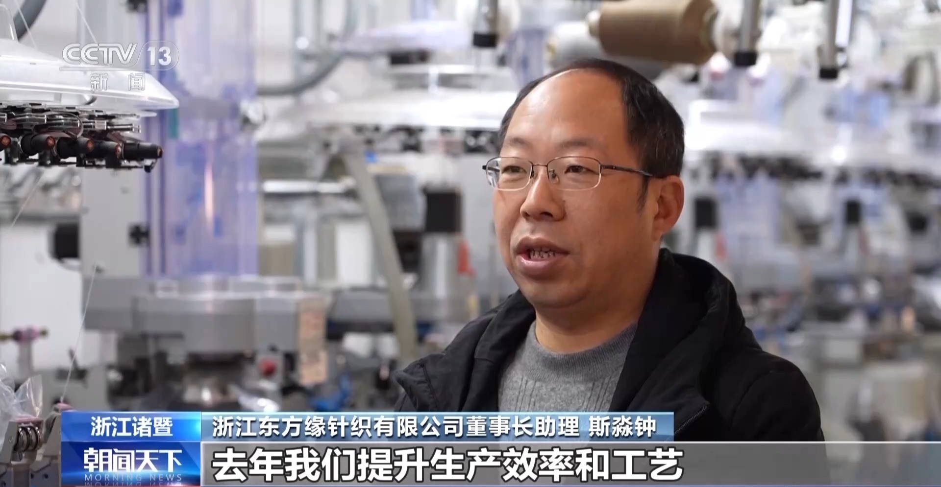 浙江东方缘针织有限公司董事长助理 斯淼钟:去年,我们提升生产效率和工艺,2024年利润增长了大概20%,目前订单已经排到了2025年9月份。